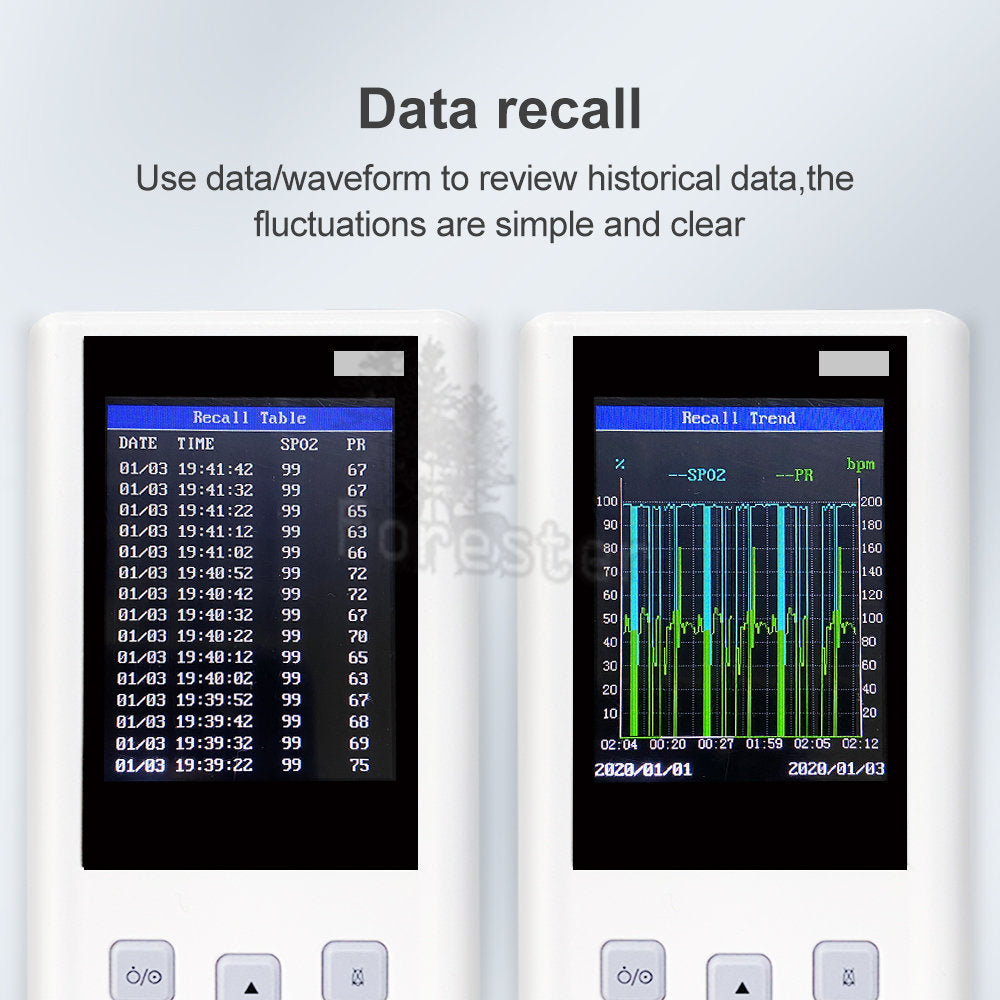 2.Featuring a compact and lightweight design, our Portable Pulse Oximeter Monitor is easy to use, carry and store. It boasts a large and clear display screen that conveniently displays vital data instantly, allowing you to monitor the condition of your furry friend in real-time. Additionally, this device is equipped with advanced memory storage, making it possible to store and retrieve up to 24 hours of data.