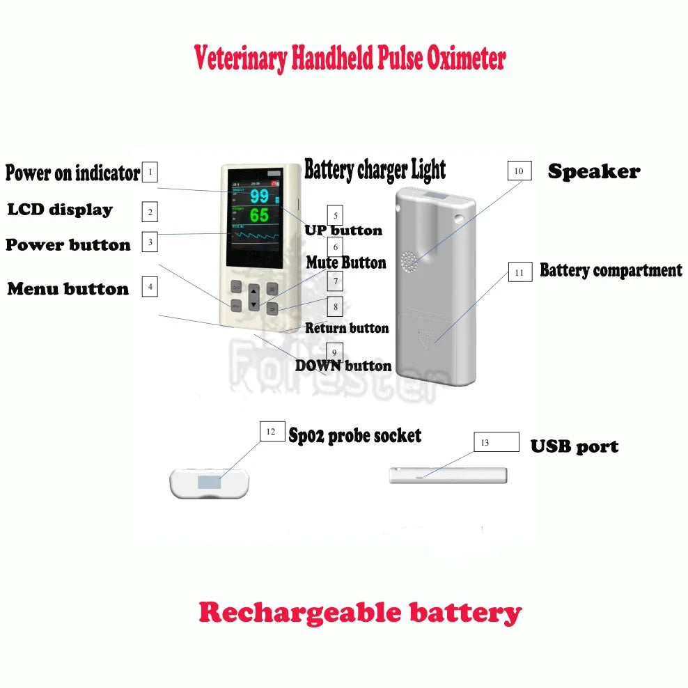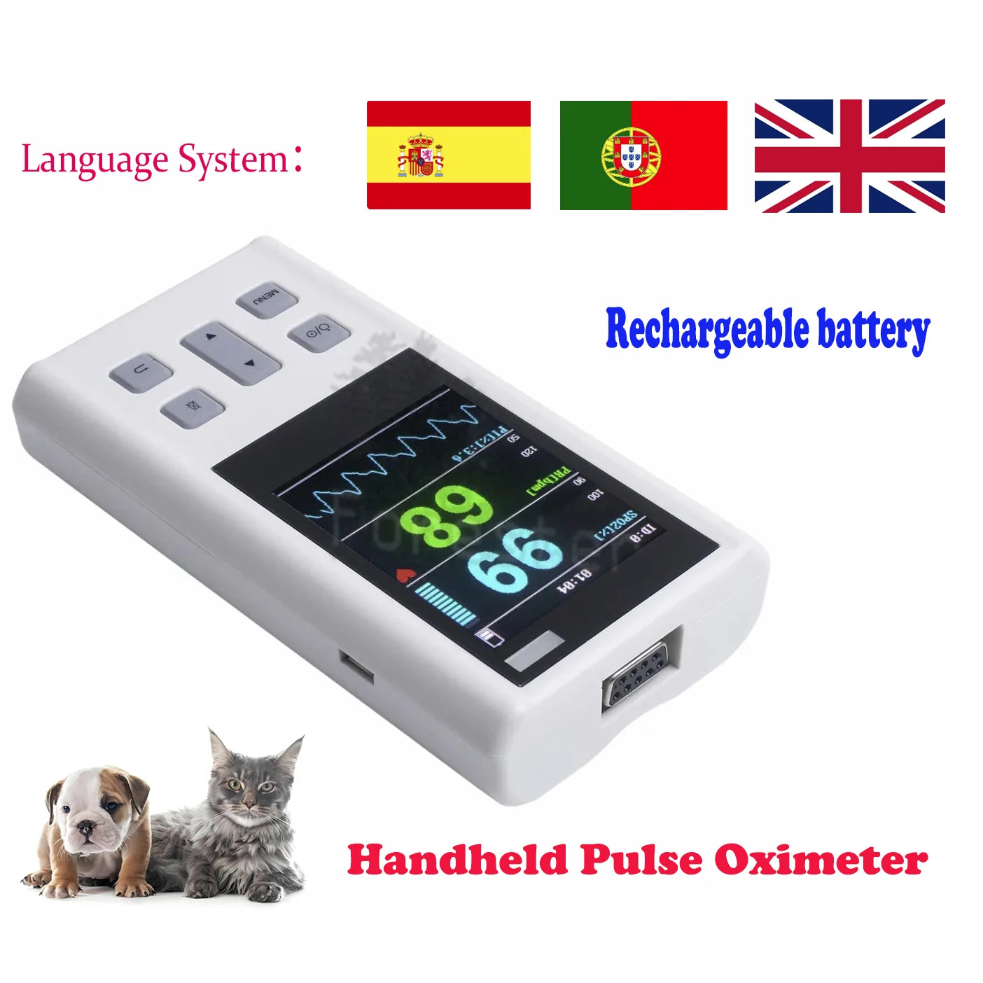 Portable Handheld Pulse Oximeter rechargeable Monitor for Heart Rate Oxygen Saturation with Veterinary SPO2 PR PI with Memory